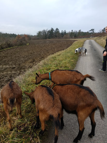 die Bunten Edelziegen und Steirischen Scheckenziegen, sowie Einblick ins "Ziegenhirn".